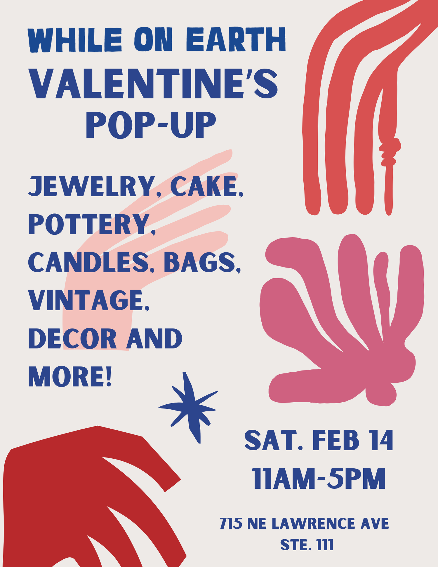 Join us from 11-5pm on Valentine's Day to shop local makers at While on Earth. Bring a date, a friend, or just yourself and shop local for your sweeties (or yourself) this year.