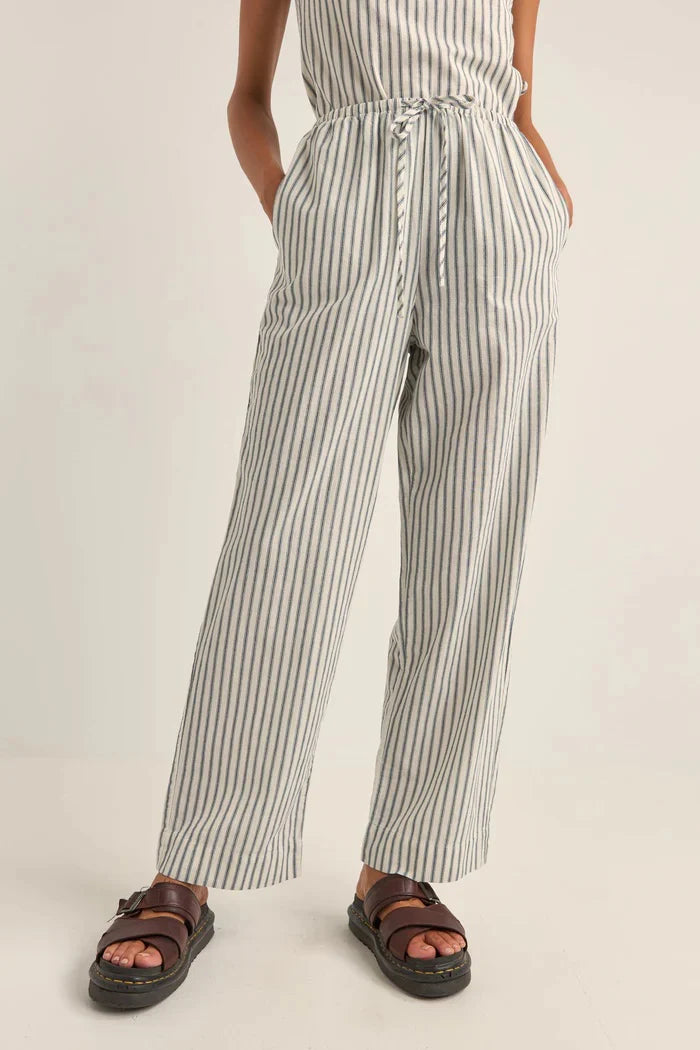 The Frankie Elastic Pant standard fit and breezy design make these pants a seaside essential, embodying relaxed elegance. The elastic waist with a drawcord ensures a personalized fit for comfort and versatility. With no lining, these pants offer a lightweight and carefree option that seamlessly blends comfort with coastal chic.