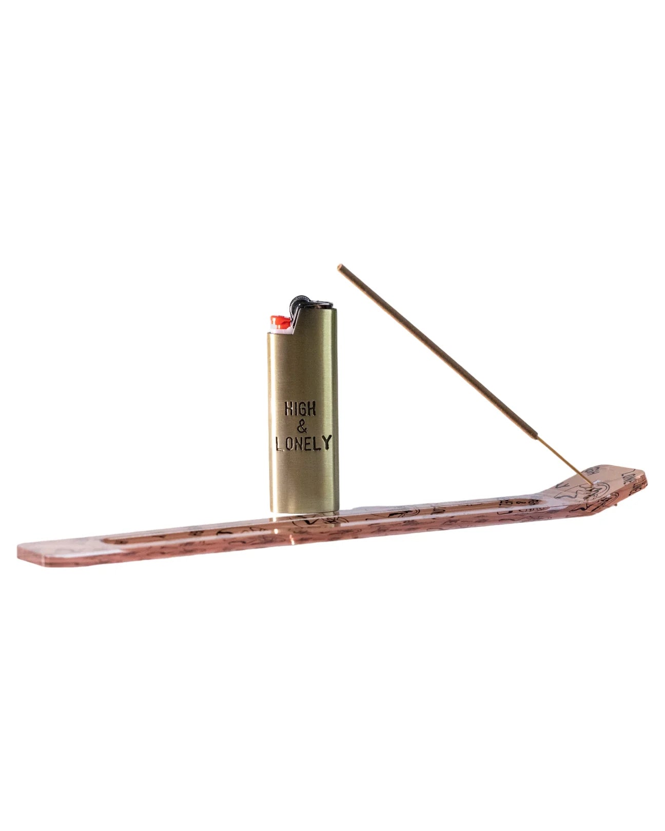 Metal Lighter Sleeve. Cast with the High & Lonely stamp logo. Slides over your standard ugly Bic* lighter and gives it some class. This thing will gather a nice patina over time.