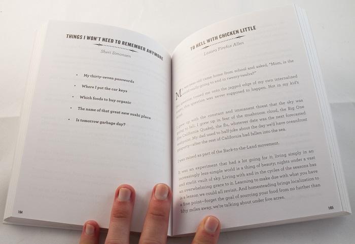 This is an anthology about how people prepare for apocalypse: climate, religious, or personal. This is a book about personal apocalypses: When our gardens die, when all is lost, when our hearts feel ruined, we the people rise—we soften ourselves to meet the chaos. In the rubble of it all, our worst fears realized, we build some small fire and warm our hands. And as night falls, we see that the moon and stars still rise, too, with or without us, and we begin to relax.